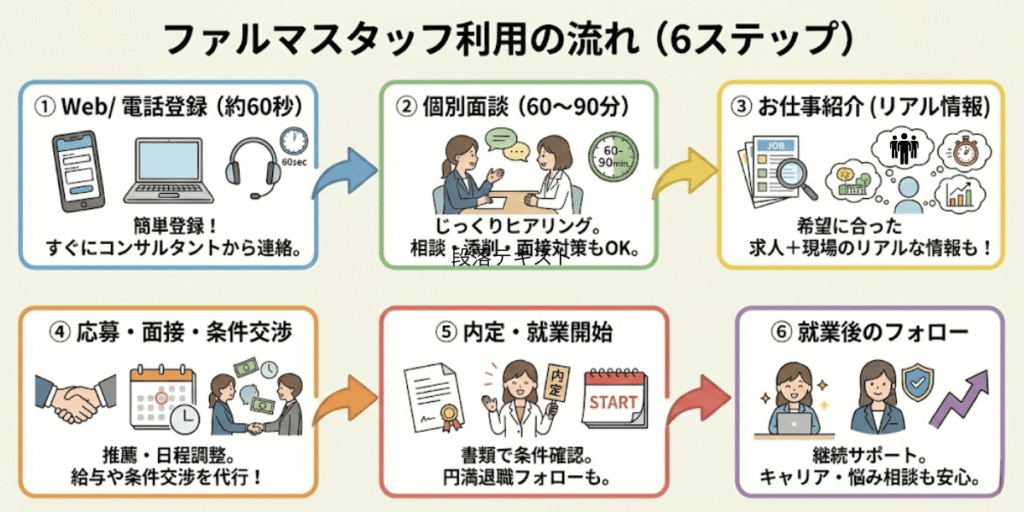 ファルマスタッフ 利用の流れ(登録から入社まで)